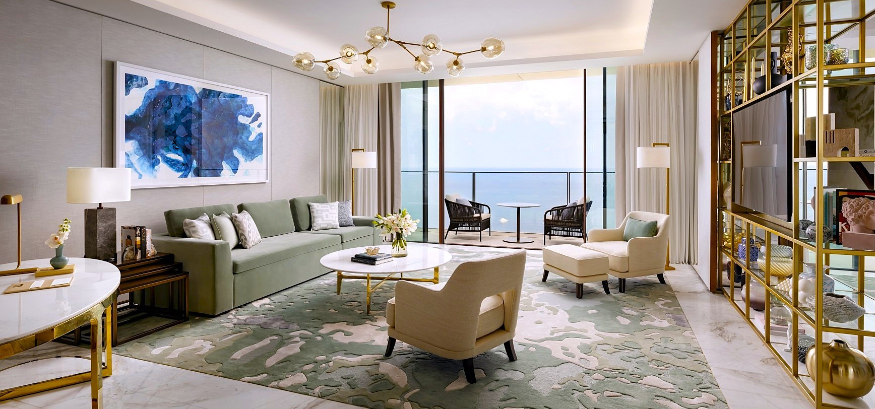 Luxurious guest room at Atlantis The Royal offering breathtaking views and elegant interiors.